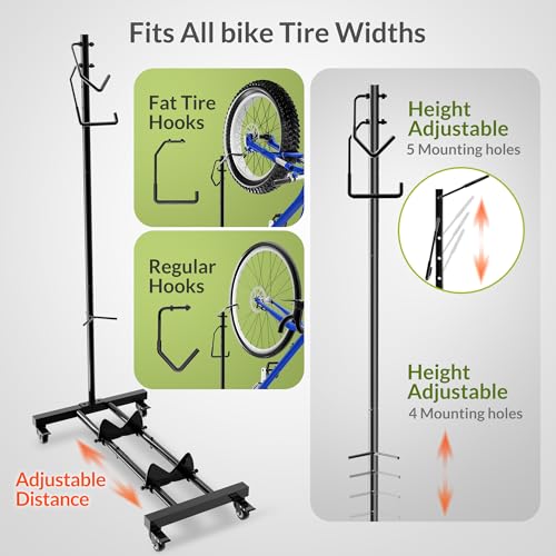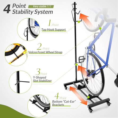 移動も保管もこれ一台でOK!キャスター付きでラクに動かせて、ロック機能でしっかり固定できます。さまざまなタイプの自転車に対応しており、省スペースでスッキリ収納。万が一のときも安心の返金保証付きです。