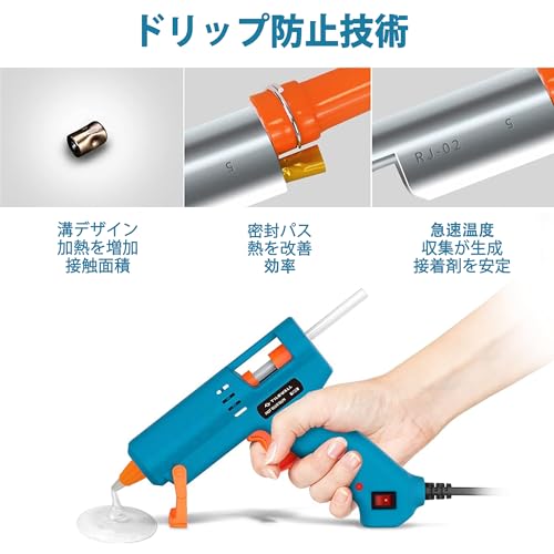 使いやすさ、速乾性、接着力、すべてにおいて高評価!液漏れなし、安定した温度と吐出量で、作業中のストレスを軽減。透明グルースティックもたっぷり付属で、コスパも抜群。DIY初心者さんからプロの方まで、快適なDIYライフをサポートします。