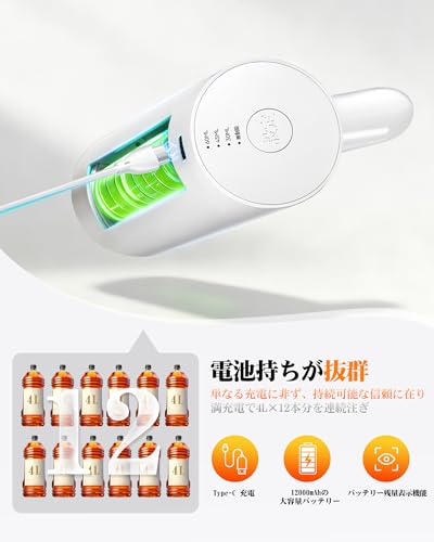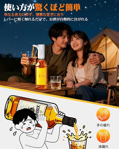 こちらは、なんと電動ディスペンサーになっており、グラスでボタンを押すだけでお酒が出てくる優れものです。お酒のドリンクバーのようで、夢のような商品ですよね。コンセントに挿して充電するタイプなので、充電が切れてしまっても、コンセントに挿しながら使用できます。