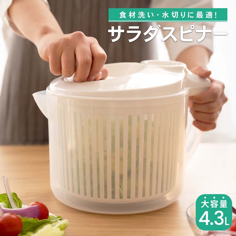 4.3Lの大容量のハンドル式のサラダスピナーと水切り・ミキサー・みじん切りができる3WAYのサラダスピナーが販売されておりますので、興味のある方はチェックしてみてください。