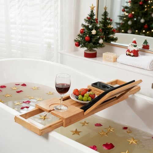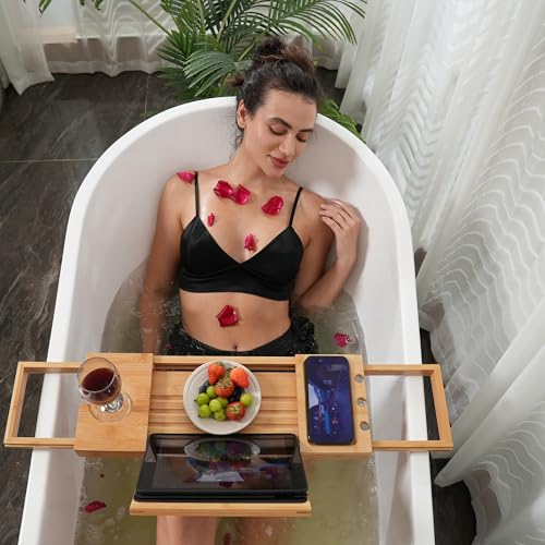 Utoplike バスタブトレー 竹製 バストレー お風呂テーブル
