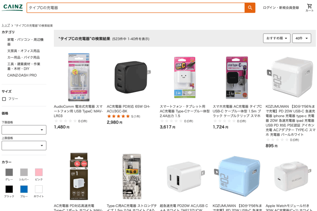 今回はタイプCの充電器の取り扱い状況を様々な店舗で調査してみました。ホームセンター・家電量販店・イオン状況も調べました。