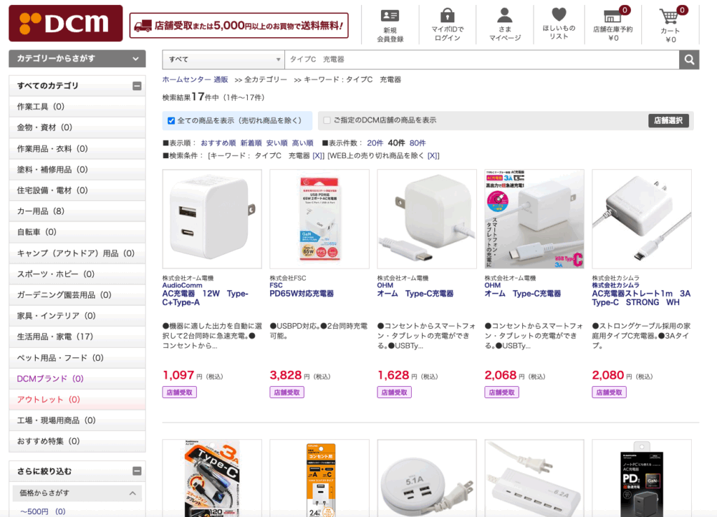 タイプCの充電器はホームセンターでは売っている?
