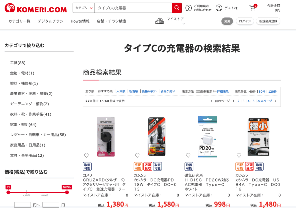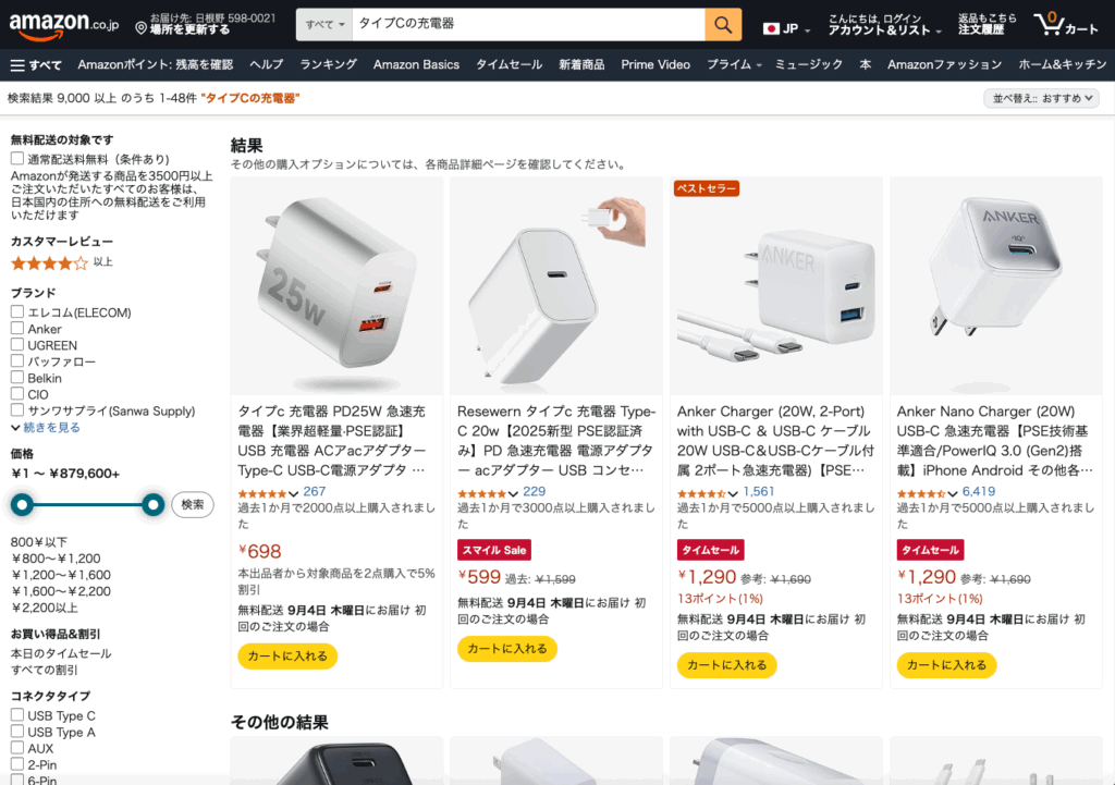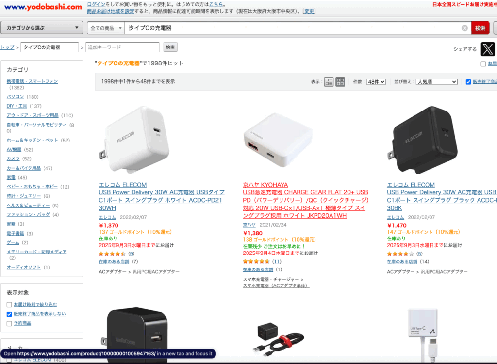 一方で、その他の店舗でもタイプCの充電器は販売されているのでしょうか?
