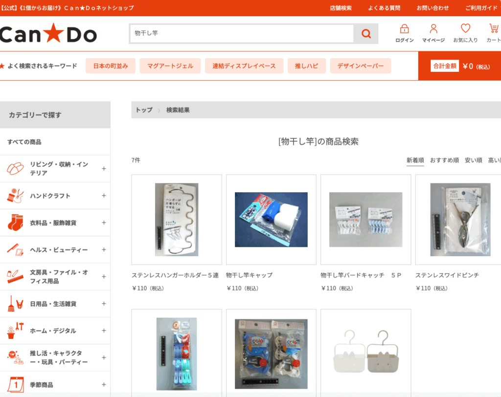 物干し竿は、100均のキャン★ドゥでも販売されていません。