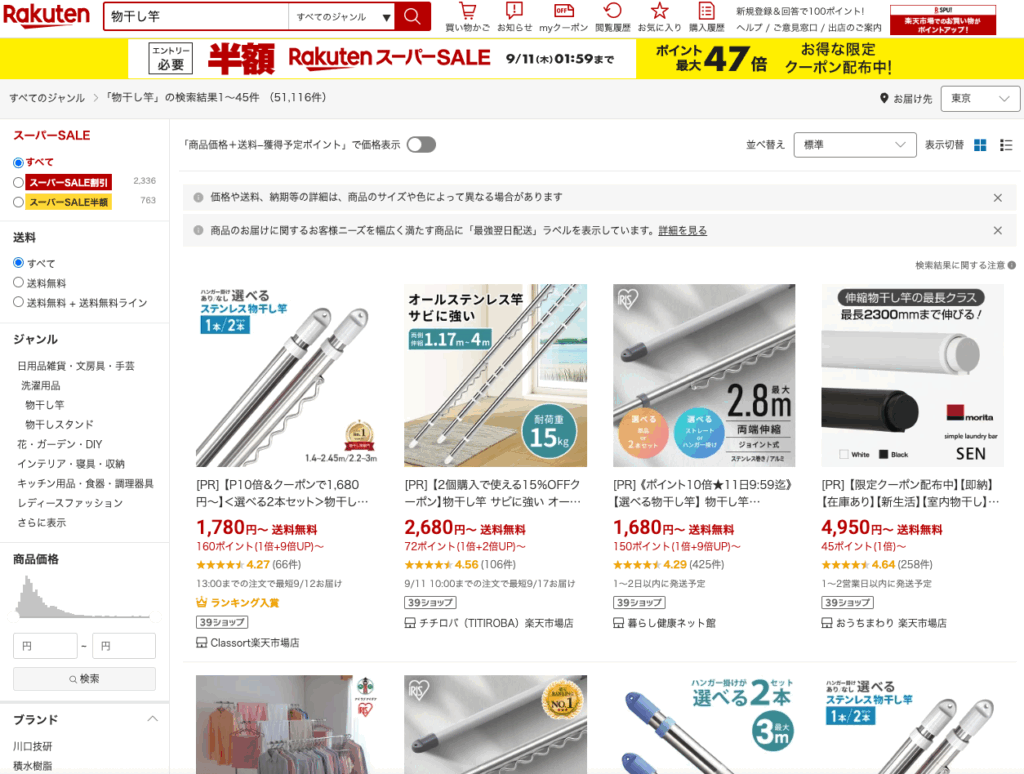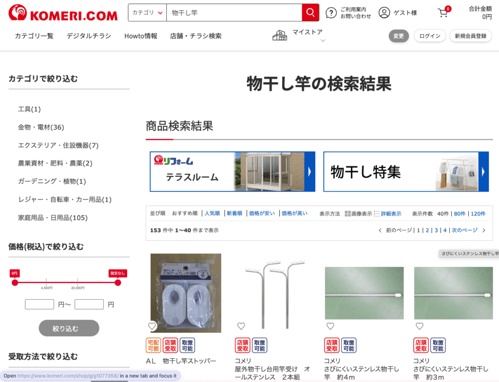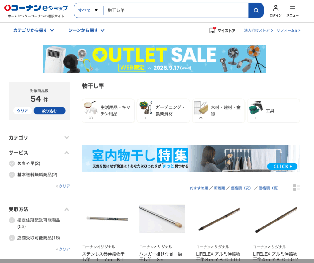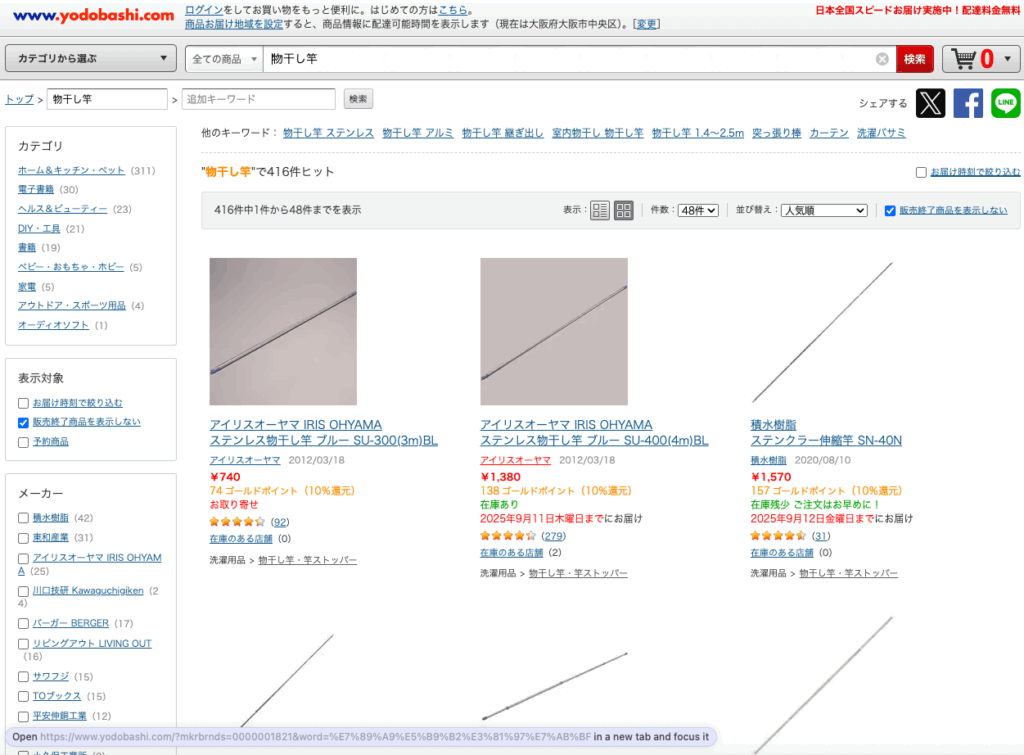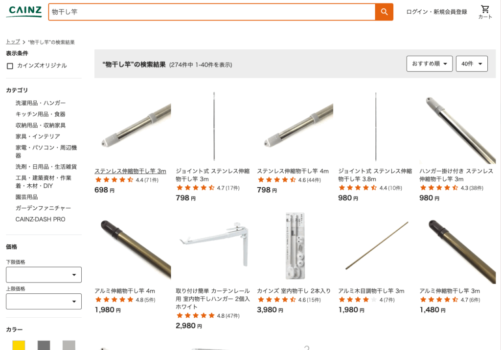 一方で、その他の店舗でも物干し竿は販売されているのでしょうか?