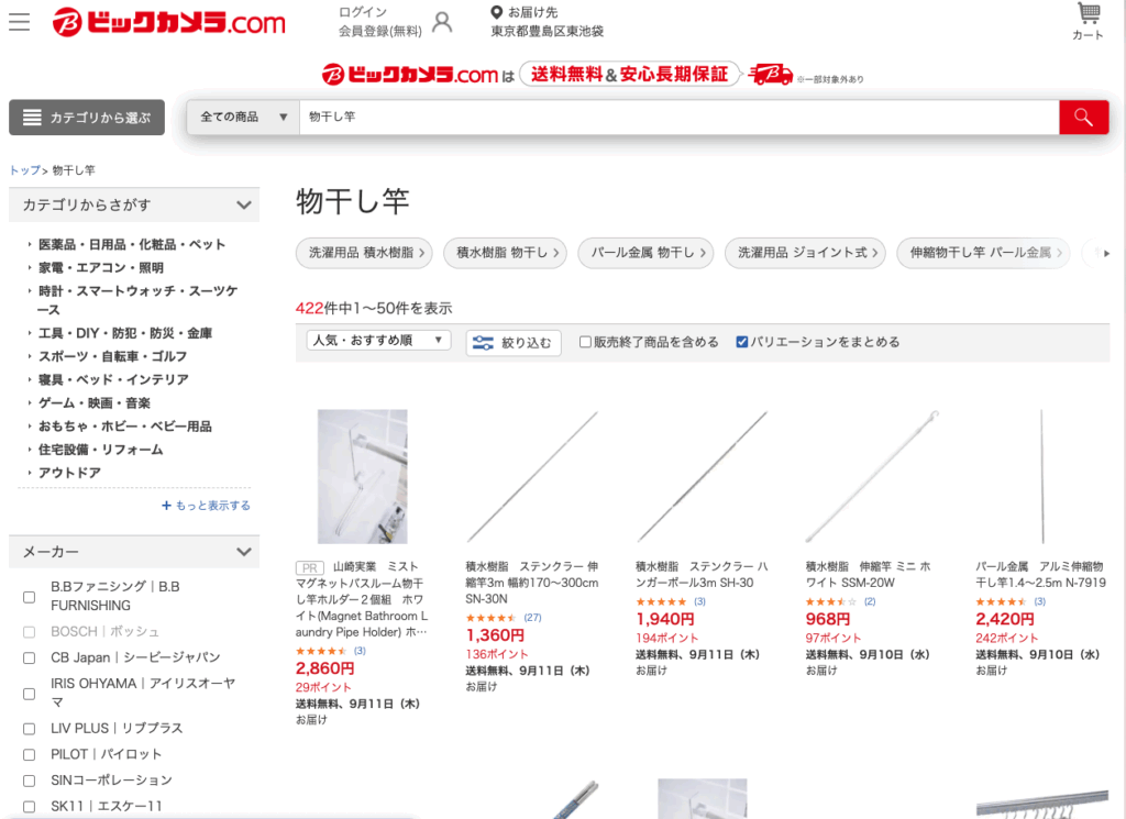 今回は物干し竿の取り扱い状況を様々な店舗で調査してみました。ホームセンター・家電量販店・イオン状況も調べました。