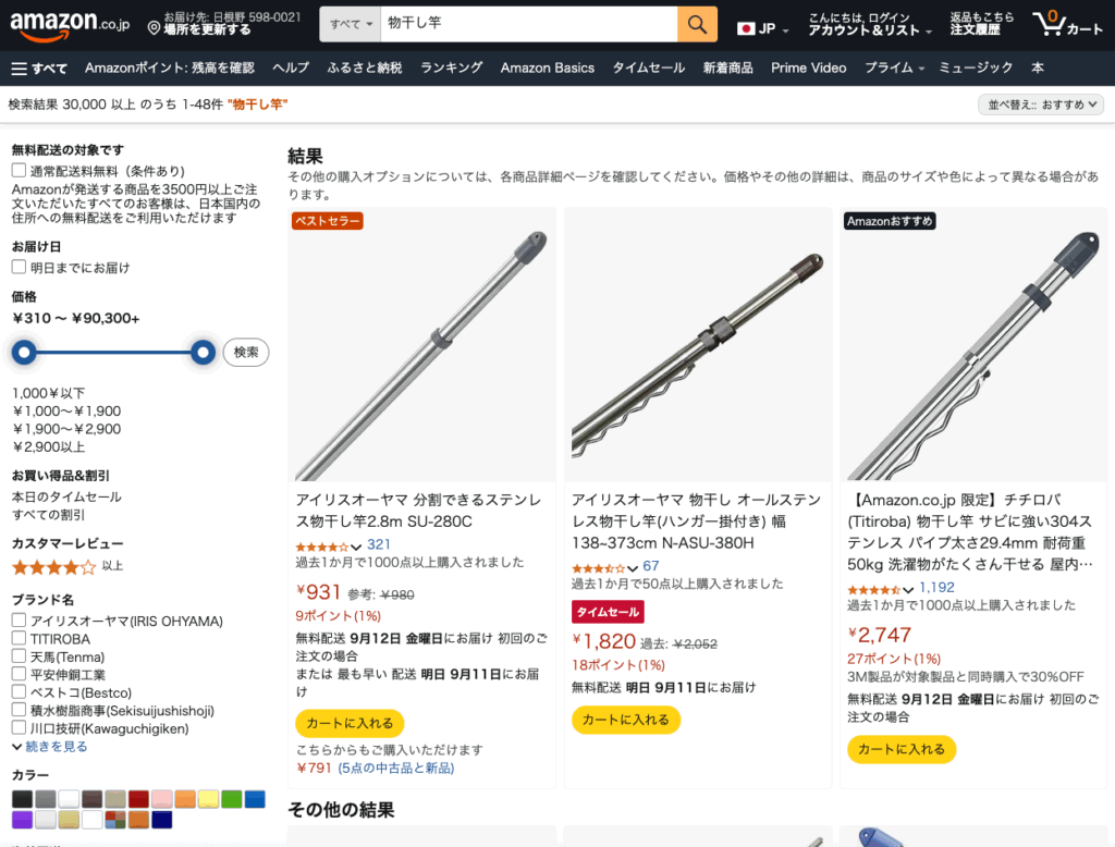 Amazonでは、物干し竿が様々な形状・大きさで販売されています!