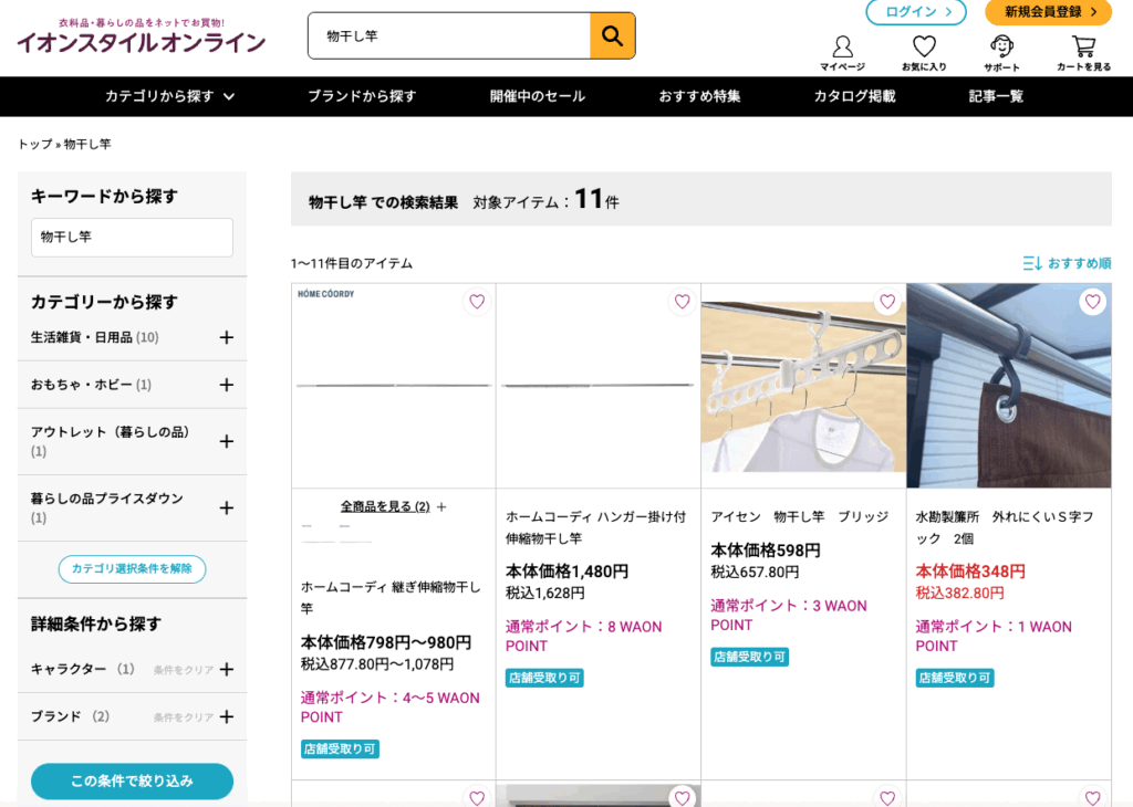 物干し竿は、大型スーパーのイオンでも販売されています!