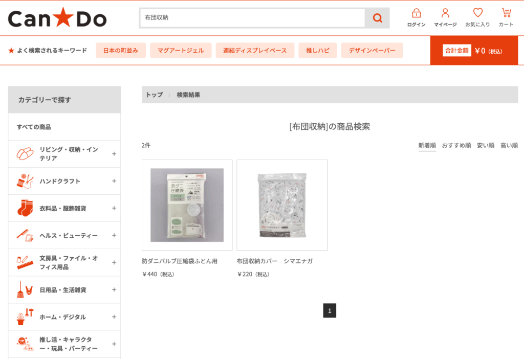 布団収納袋は、100均のキャン★ドゥでも販売されています!