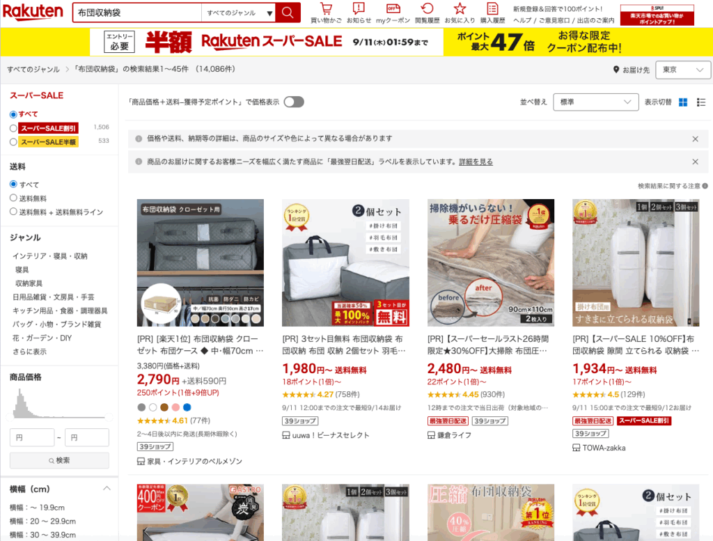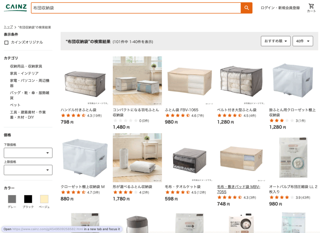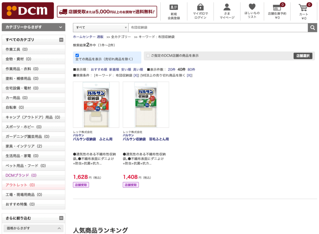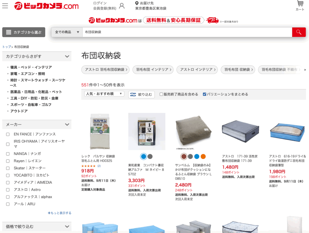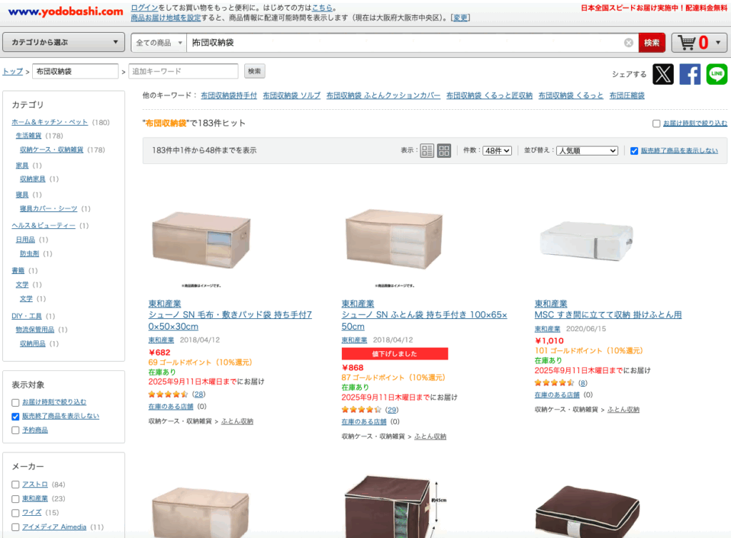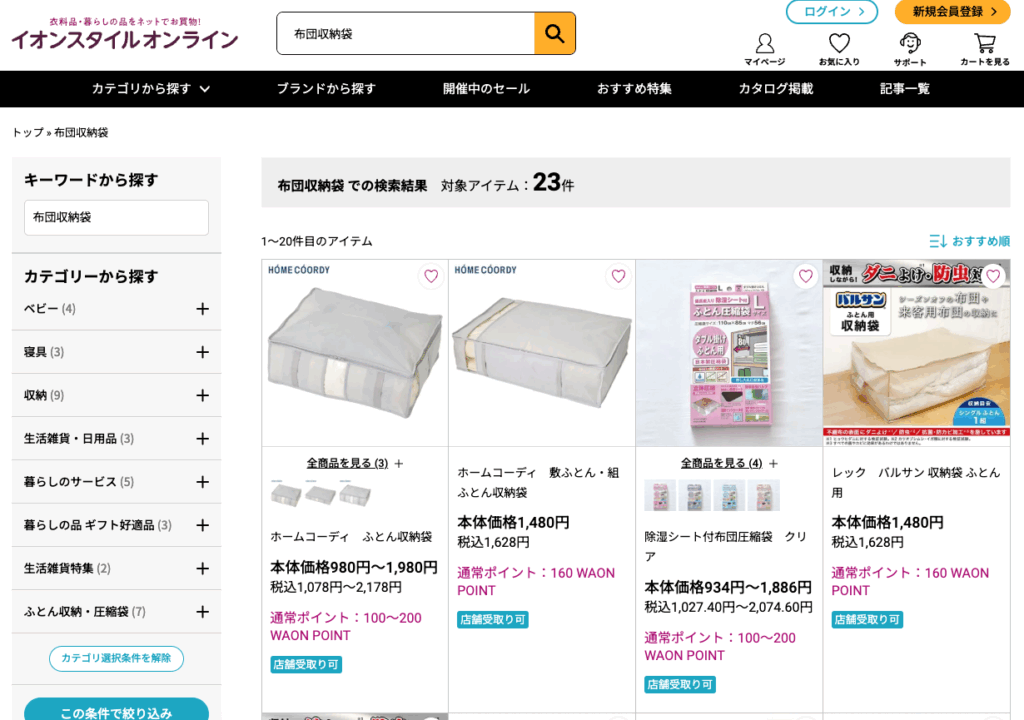 一方で、その他の店舗でも布団収納袋は販売されているのでしょうか?