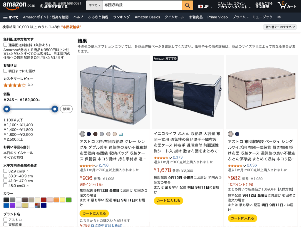 Amazonでは、布団収納袋が様々な形状・大きさで販売されています!