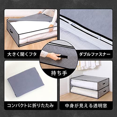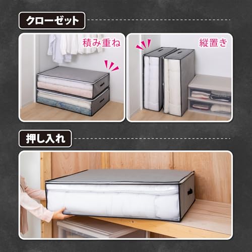 たくさんの寝具もこれ一つでOK。大きなファスナーで出し入れも簡単、クローゼットや押し入れの奥までスッキリ片付きます。