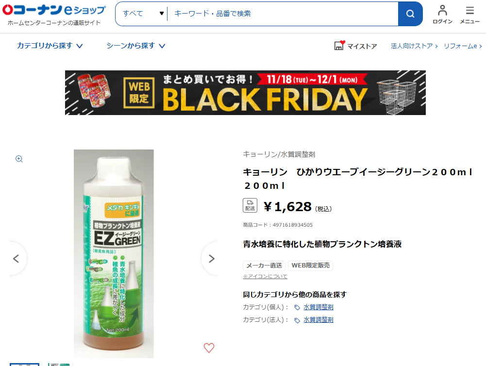 コーナンに売っているものは青水が発生しにくい屋内で、水道水からの自然発生が可能。生クロレラ、ミドリムシなどの培養にもおすすめです。
