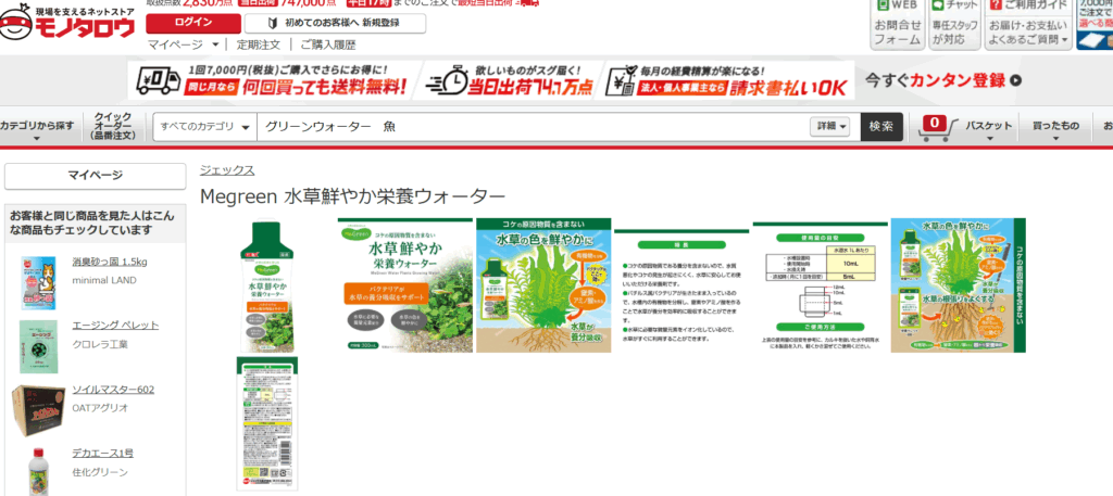 楽天市場でも豊富な種類でグリーンウォーターが販売されていました!