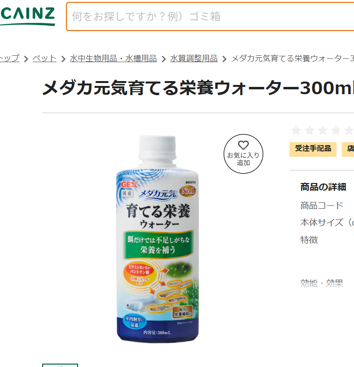 カインズで売られていたものは室内飼育や餌だけでは不足しがちな栄養を補い―稚魚の成長をサポートしてくれます。