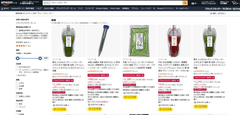 Amazonでは多くの種類のグリーンウォーターをお得に購入することができます!