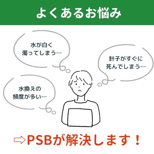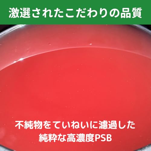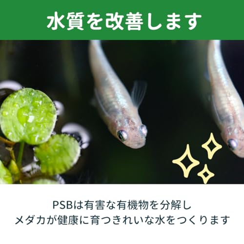 高濃度の光合成細菌(PSB)がアンモニアを分解し、稚魚・針子・ミジンコが健康に育つ清潔な水槽環境を実現。バクテリア剤・水質浄化剤を探している方におすすめ。