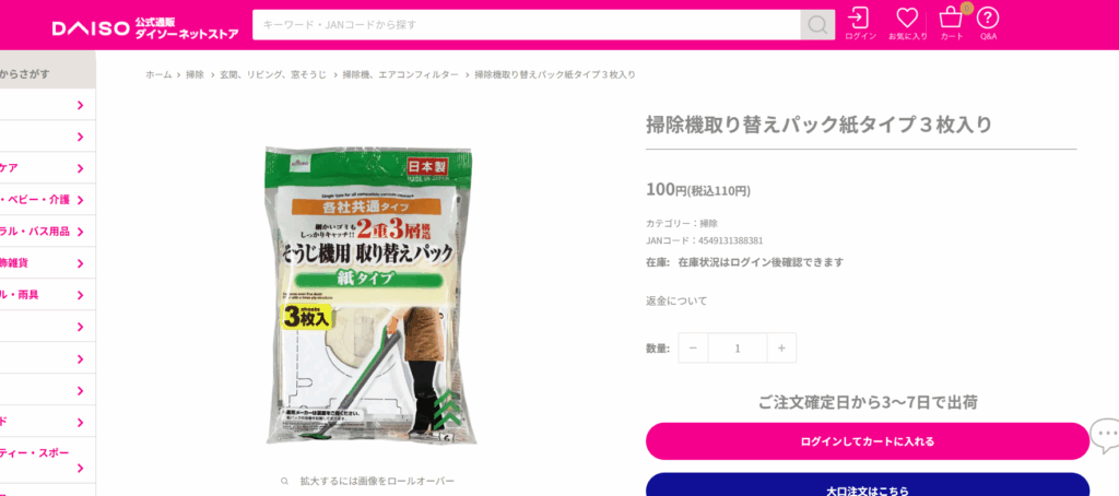 そんな掃除機の紙パックですが、100均で購入できるのでしょうか?