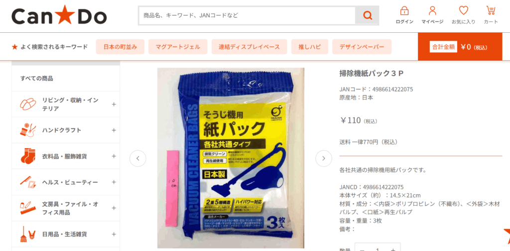 マキタ掃除機の紙パックは、100均のキャン★ドゥでも販売されています!
