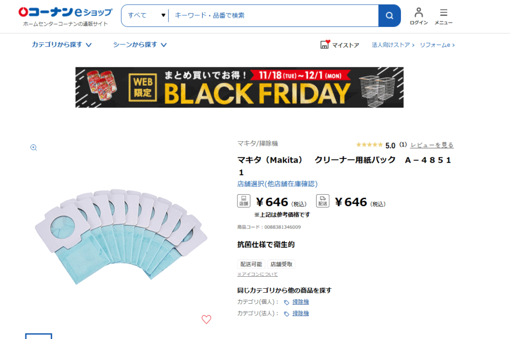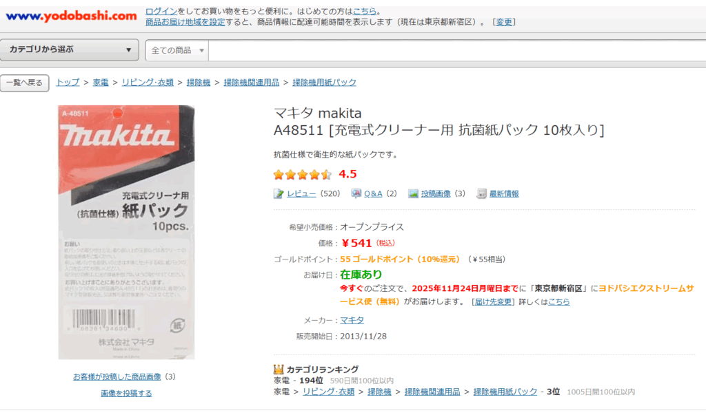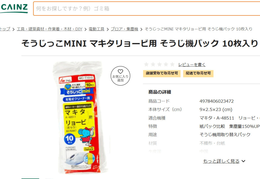 一方で、その他の店舗でもマキタ掃除機の紙パックは販売されているのでしょうか?
