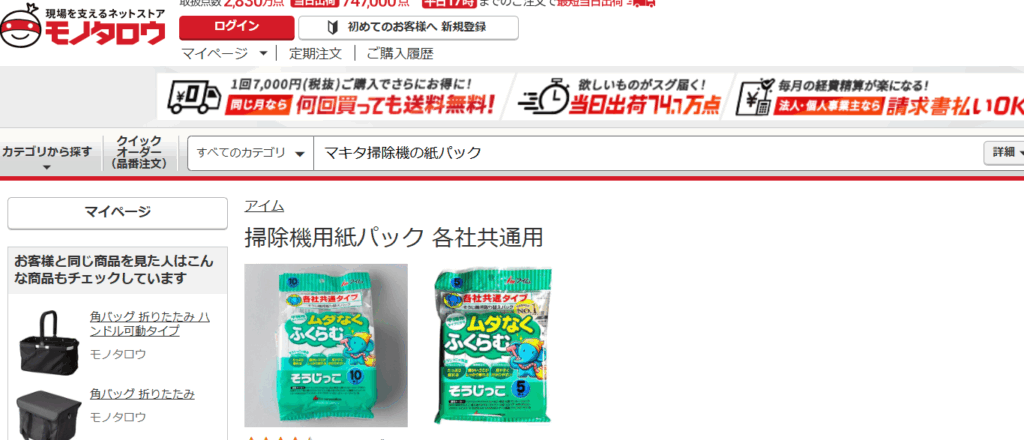 (公式ページ)モノタロウのマキタ掃除機の紙パック