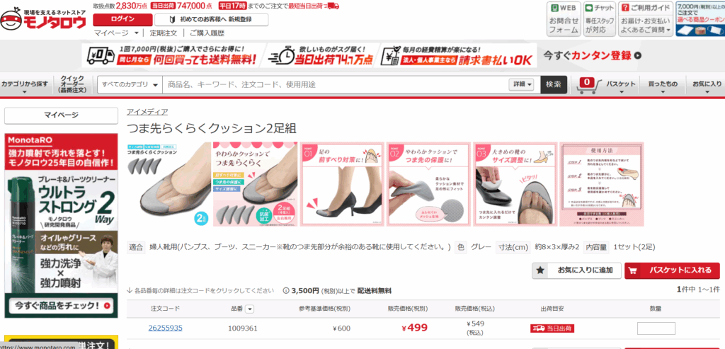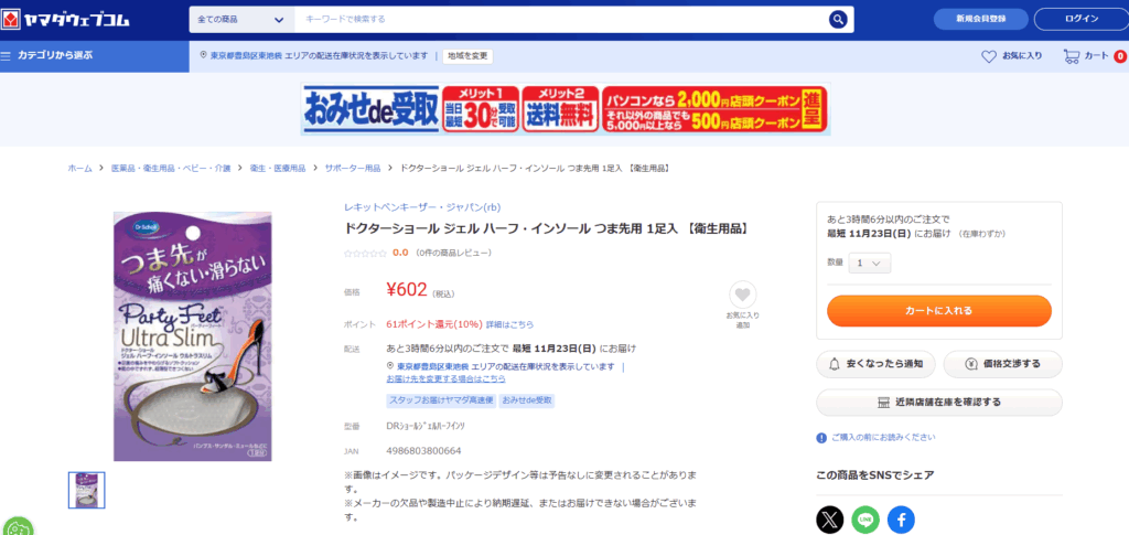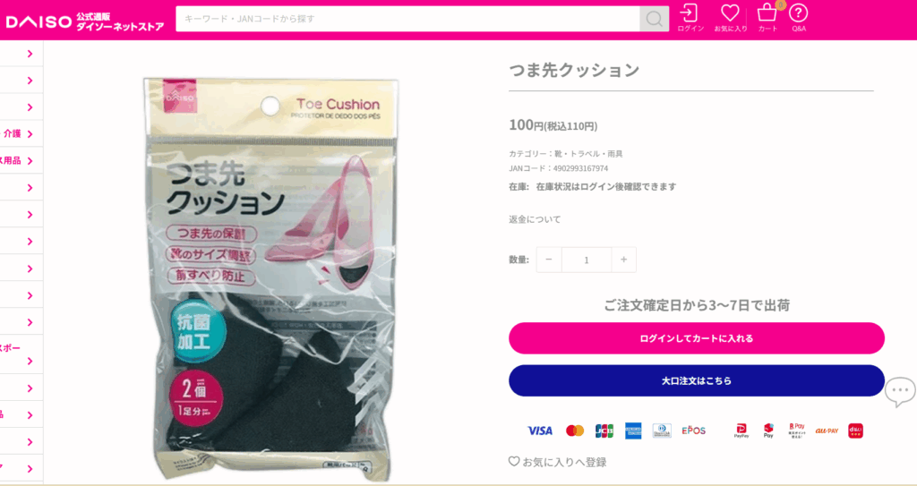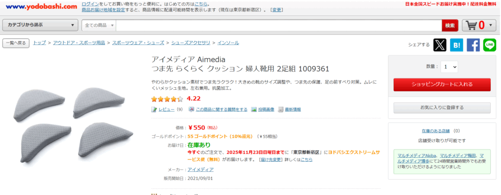 一方で、その他の店舗でもつま先クッションは販売されているのでしょうか?