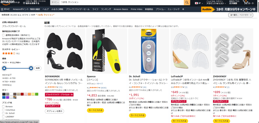 Amazonでは、つま先クッションが様々な形状・大きさで販売されています!