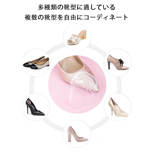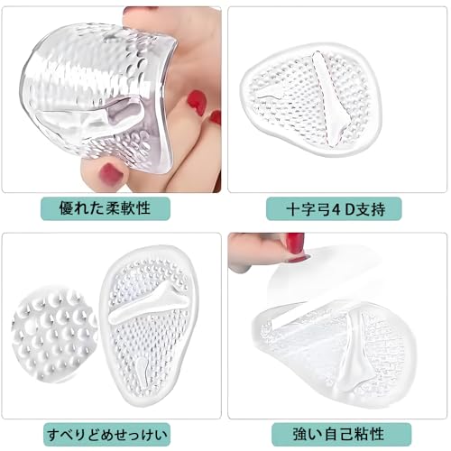 高品質ソフトゲル製の中足骨パッドが優れたクッション性と衝撃吸収性を提供し、ハイヒールやサンダル着用時の立ち仕事・ダンス・ショッピングで足の痛みを軽減します。