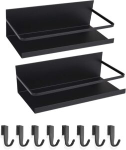 マグネットラック 冷蔵庫 キッチンラック バスルームラック マグネット スパイスラック 棚 マグネット収納 冷蔵庫ラック 洗濯機 収納 2個セット フック付き (ブラック-2個)