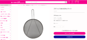 (公式ページ)ダイソーの油跳ねガード(オイルスクリーンタイプ)