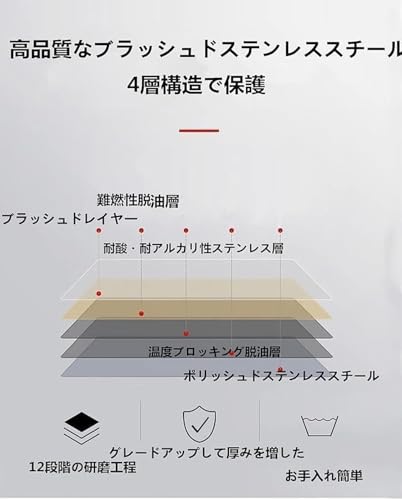 4面折りたたみ式のステンレス製レンジガード。ステンレス製の素材で洗いやすいモデルのため、 汚れをさっと落とすだけで簡単にお手入れができます。さらに食洗機対応でお手入れ簡単。長期保証と返金保証付きで安心。