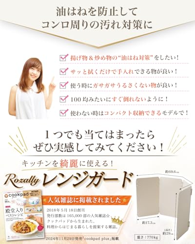 - 【雑誌掲載モデル】 レンジガード 油はねガード 折りたたみ コンパクト 油はね 油よけガード IHコンロ ガスコンロ 油汚れ 汚れ防止 使うときだけ 油ガード 食洗機対応